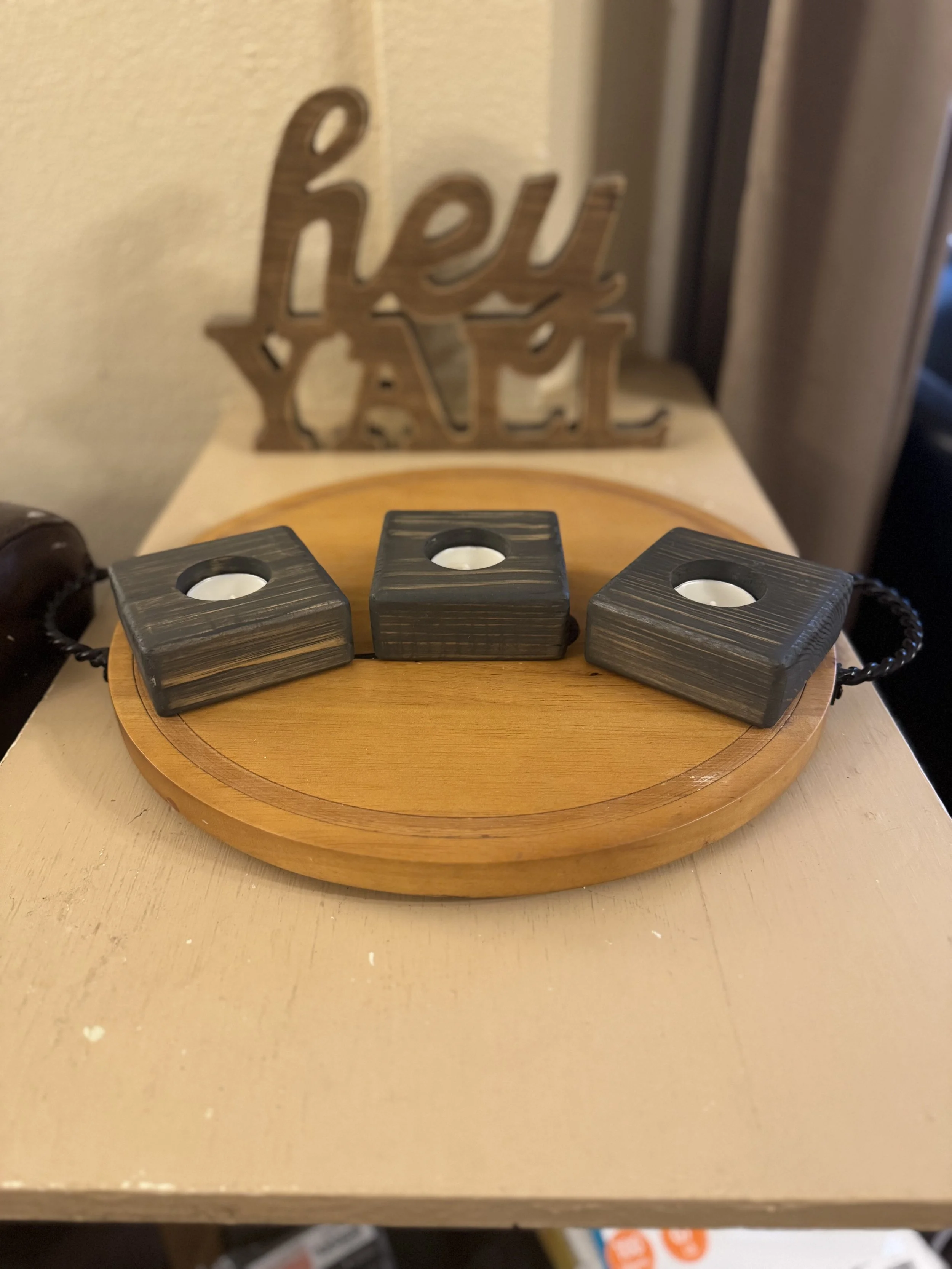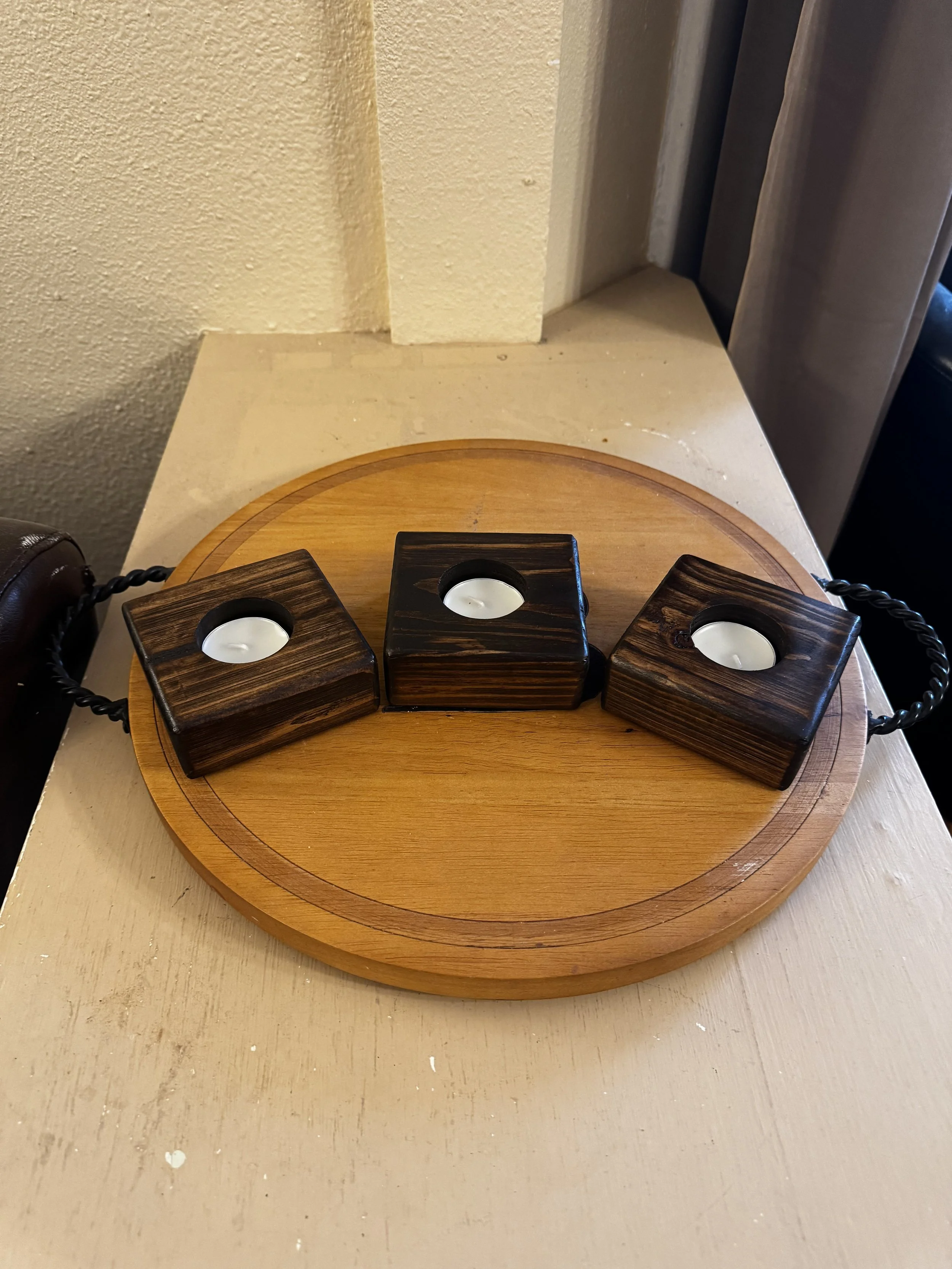 4x6 Tea Light Holder (Espresso) $30.00 Set of 3 Tea-Light Holders (Gray) $25.00 Set of 3 Tea-Light Holders (Espresso) $25.00 Set of 3 Christmas Tea Light Holders $25.00 Christmas Themed 4x6 Tea Light Holder $30.00 4x6 Tea Light Holder (Grey) $30.00